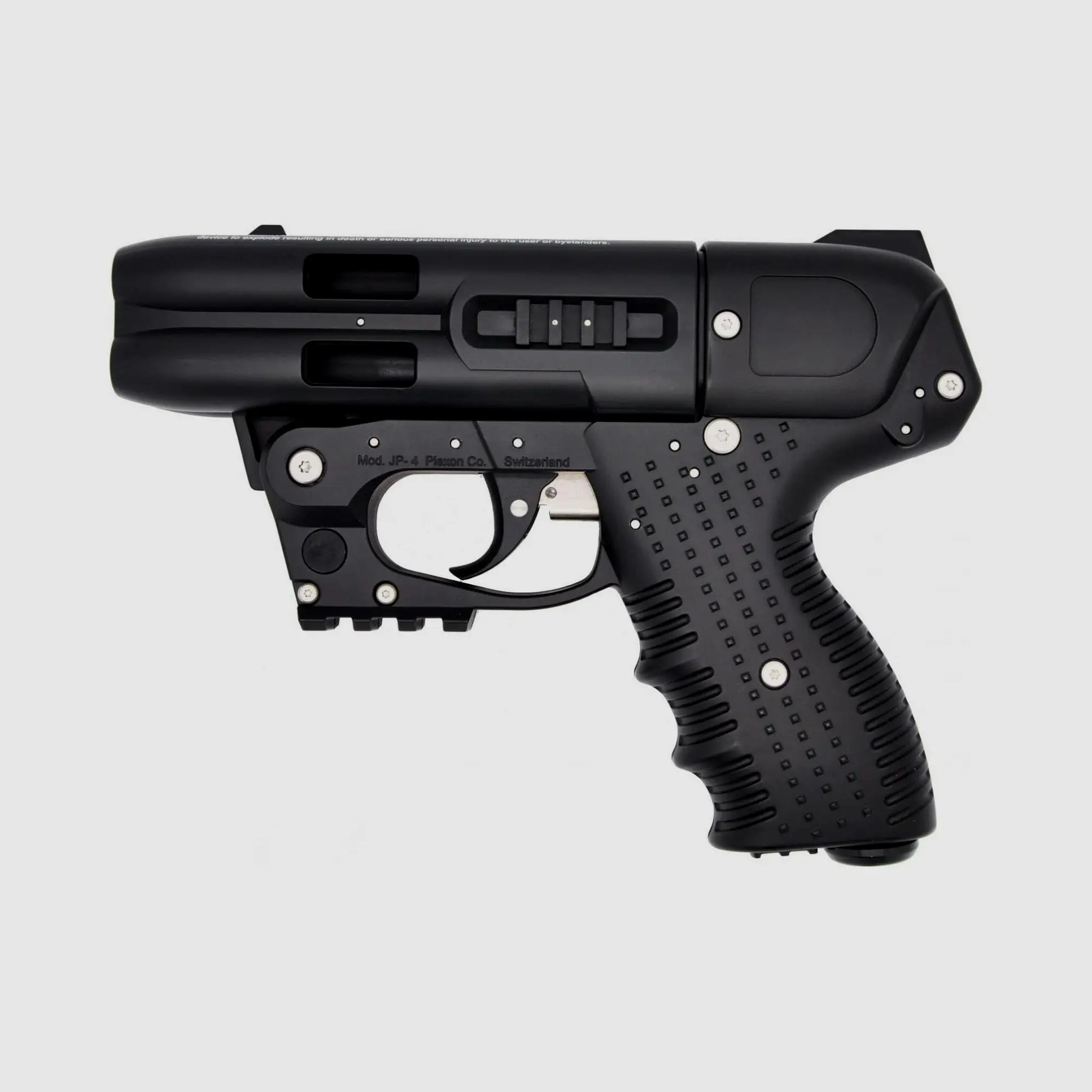 Pistolové provední prostředku, který vystřeluje slzotvornou paralyzující látku na bázi pepřových sprejů. Velice povedená zbraň z odolných materiálů zvládne jak nešetrnému zacházení tak i například nadměrnou vlhkost. Vystřelená látka je v tekuté substanci, tudíž nehrozí její vychýlení větrem, jako například u pepřových sprejů. Po zásahu se účinky projeví velmi rychle, látka způsobuje silné podráždění dýchacích cest, očí a kůže.